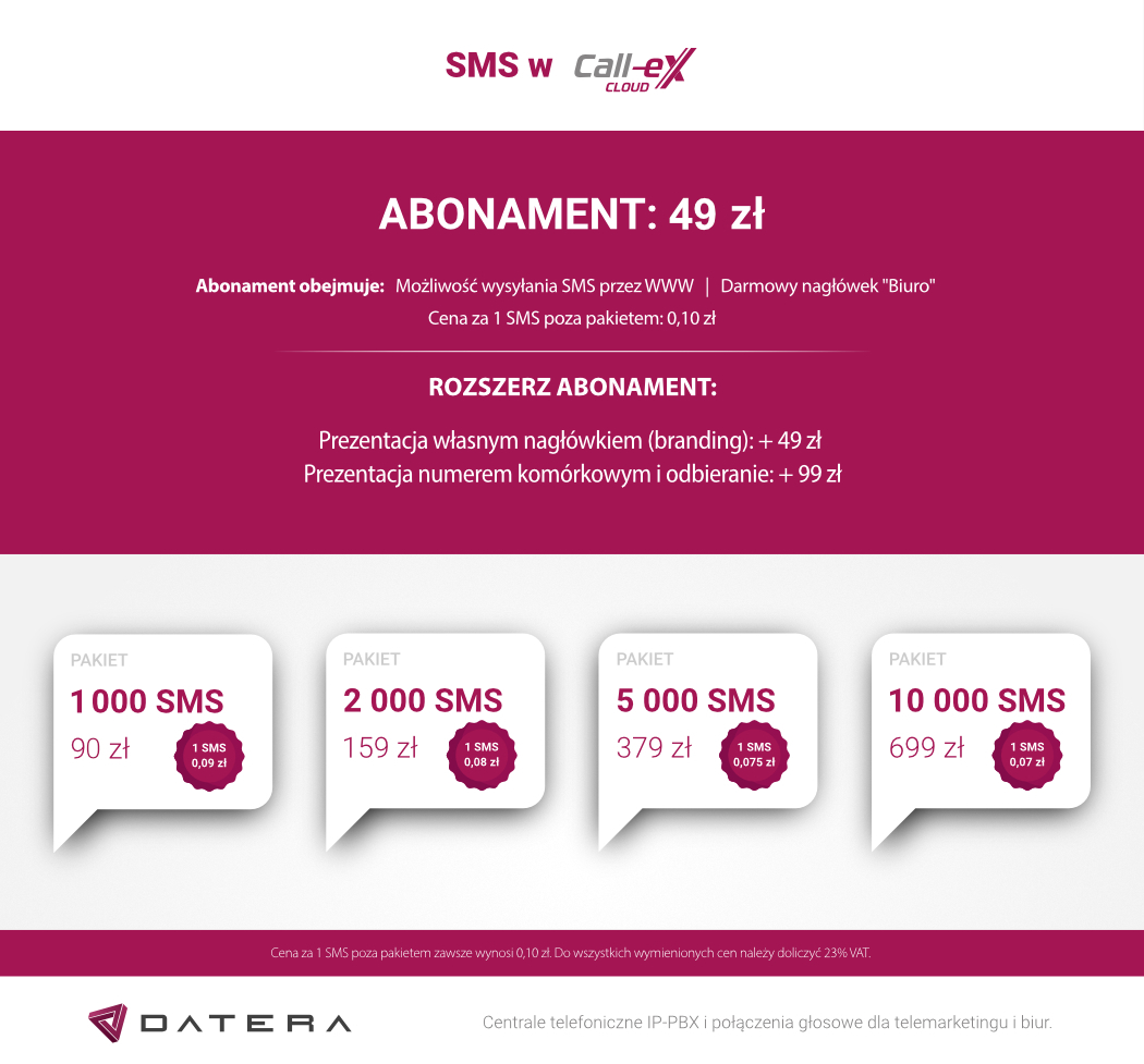 SMS Głosowy (Automatyczna konwersja SMS na wiadomość głosową przy wysyłce na numer stacjonarny) |  |