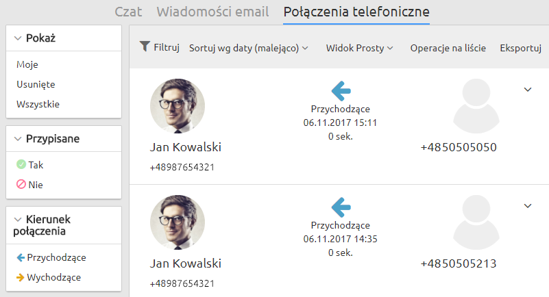- Interfejsu: CRM umożliwia pracownikom obsługującym CRM wykonywanie połączeń telefonicznych bezpośrednio z jego poziomu.